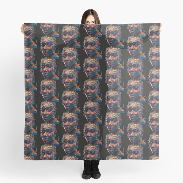 Cyborg Bloom – Futuristic Floral Robot Portrait Ship of Sirens Art by iServalan Scarf