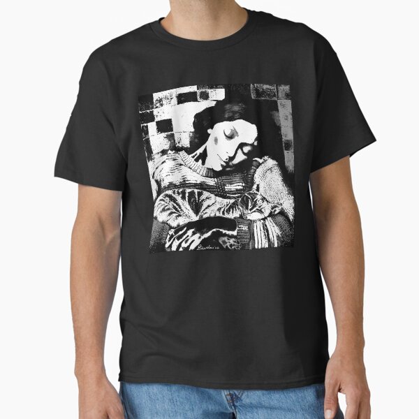 Me and Cat Sleeping in Winter Monochrome Art by iServalan for Tale Teller Club Classic T-Shirt