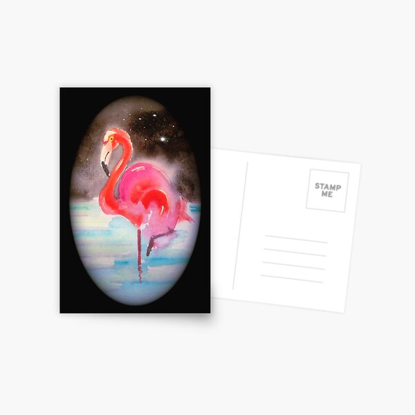 Pink Flamingo at Midnight with Twinkly Stars by Goddamn Media Postcard